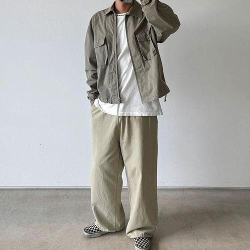 [다잇템_패션]남자 가을면팬츠 드로우코드 와이드핏 바지