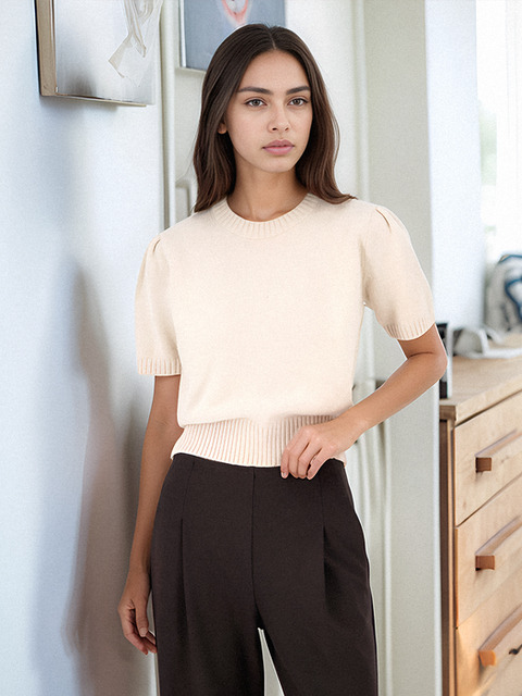 [아쿠드] Puff Sleeve Raccoon Knit _Beige