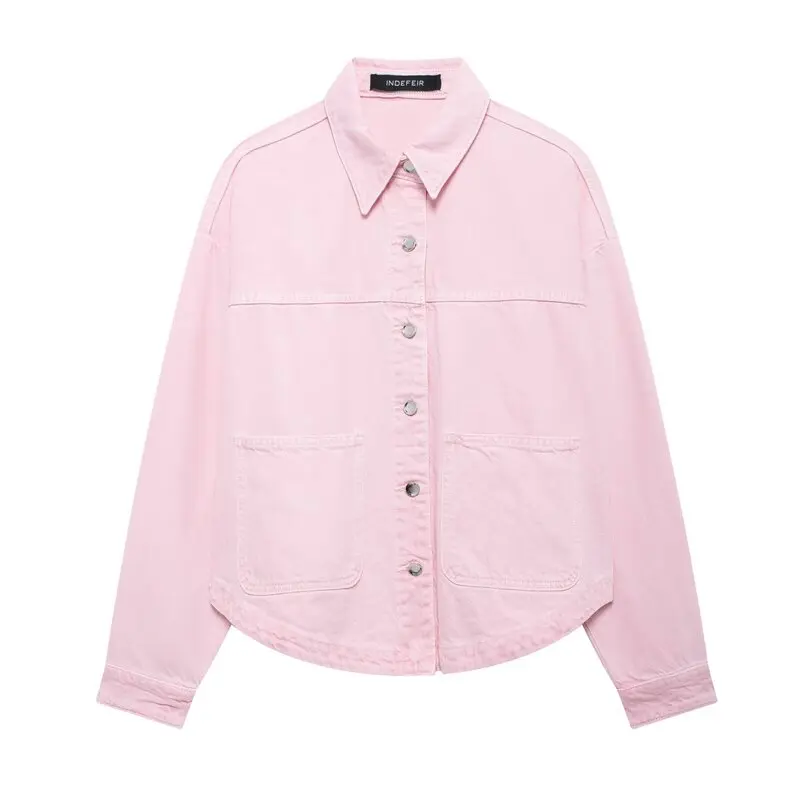 2 색 여성 캐주얼 진 코트 2025 봄 여성 데님 재킷 긴 소매 자른 여성 소녀 streetwear(N2418)
