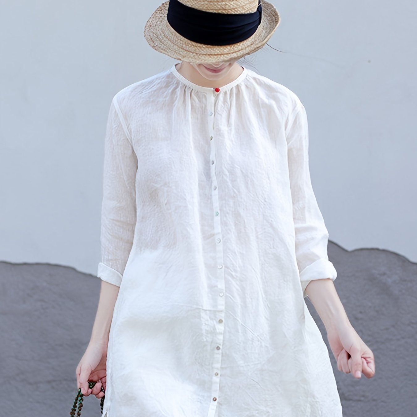 TEMU 라운드 넥 대비 색상 단추 미디 기장 루즈핏 어반 자외선 차단 경량 화이트 가디건 셔츠