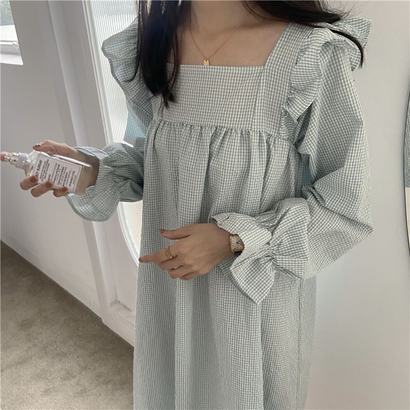 레트로 오리 긴팔 롱 빅사이즈 홈웨어 원피스 잠옷예쁜 여자 여성 신혼 루즈핏 가을