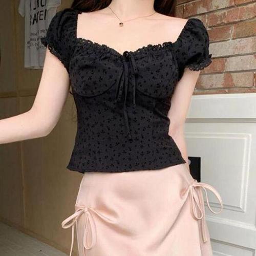 펀칭 셔츠 시스루 포인트 블랙 벌룬 여름 반팔 블라우스