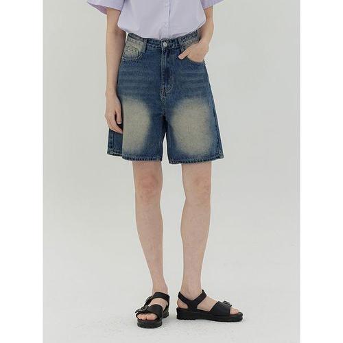 [진마니아]여성 A라인 빅워싱 연청 5부 와이드 데님 쇼츠 팬츠