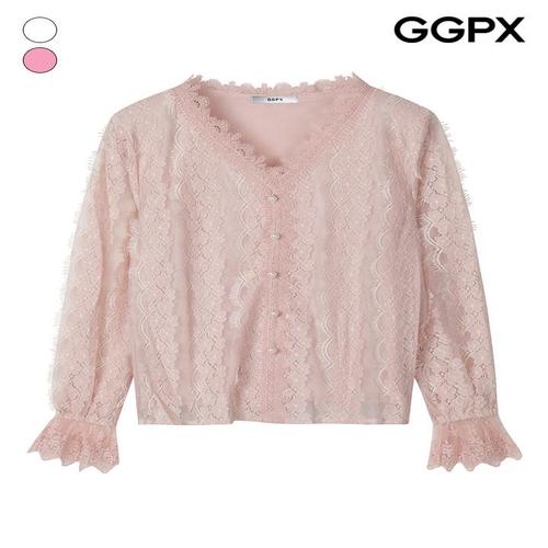 [GGPX]V넥 진주 버튼 로맨틱 레이스 블라우스 (GP9SH015F)