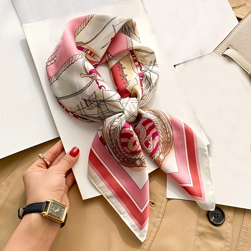 TEMU 세련된 바다 프린트가 돋보이는 27.58인치 정사각형 스카프, 우아하고 가벼운 인조 숄, 성숙한 스타일의 햇빛 가리개 헤드스카프, 여성용으로 적합