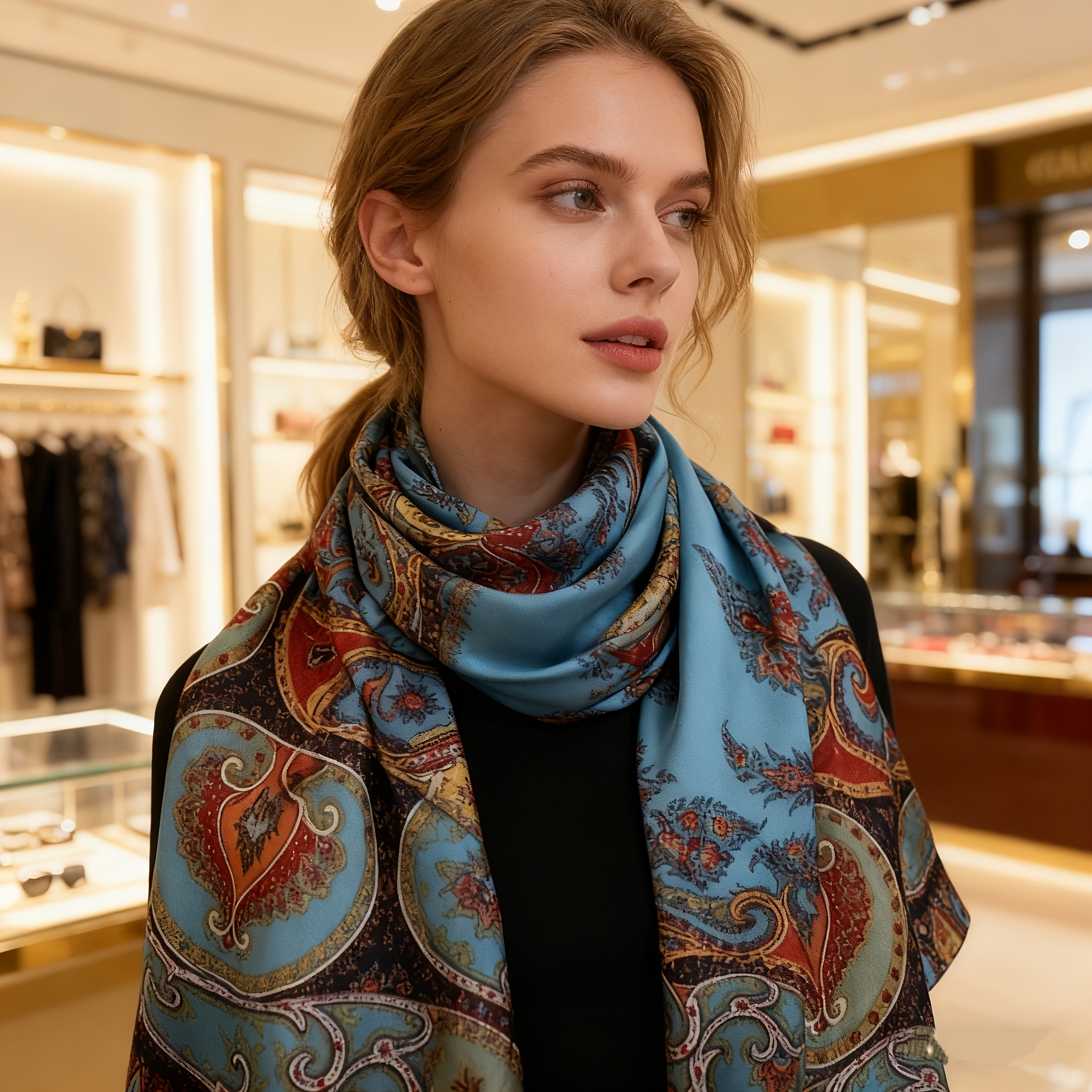 TEMU 여성용 럭셔리 스퀘어 스카프 - 우아한 넥 랩 샤울, 부드러운 실크 같은 질감, 비신축성 포멀 & 일상 액세서리, 파티, 오피스, 여행용 - 세련된 여성 의류 액세서리, 파티 액세서리, 고급 디자인, 실크 같은 원단, 사무실 착용, 클래식 스타일, 고품질 소재, 스타일리시 샤울, 패션 애호가