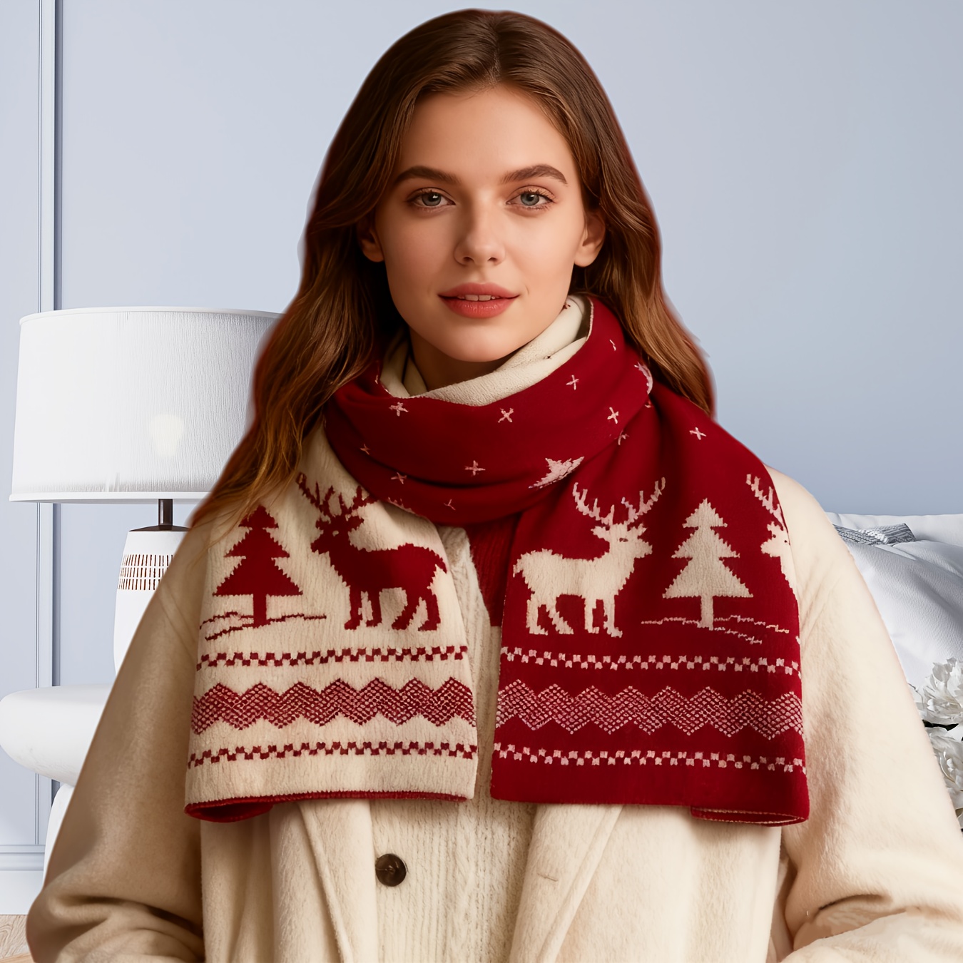 TEMU 여성용 겨울 따뜻한 스카프 - 레드 & 사슴 & 소나무 패턴, 포인세티아 모양 꽃, 부드럽고 통기성 좋은 원단, 크리스마스, , 겨울 따뜻한 스카프, 크리스마스 액세서리, 축제 디자인, 내구성 좋은 소재, 스타일리시한 랩