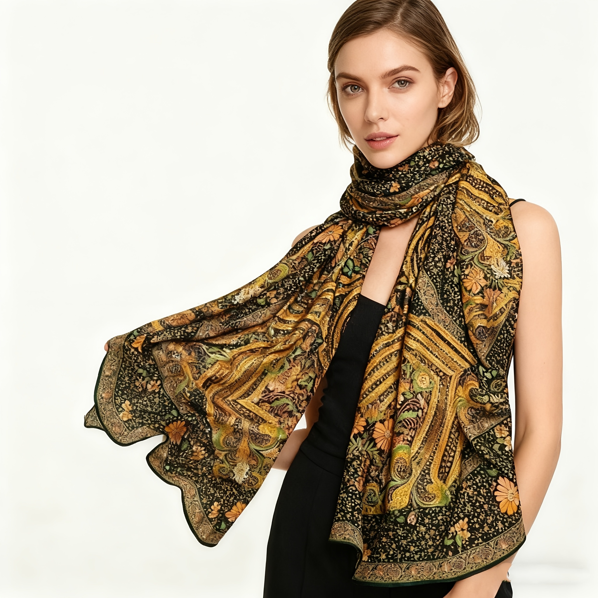 TEMU 골든 아워를 위한 디럭스 에디션 Festiveglow 스카프 - 베네치아 레이스 트림 특징 (선물용으로 적합)
