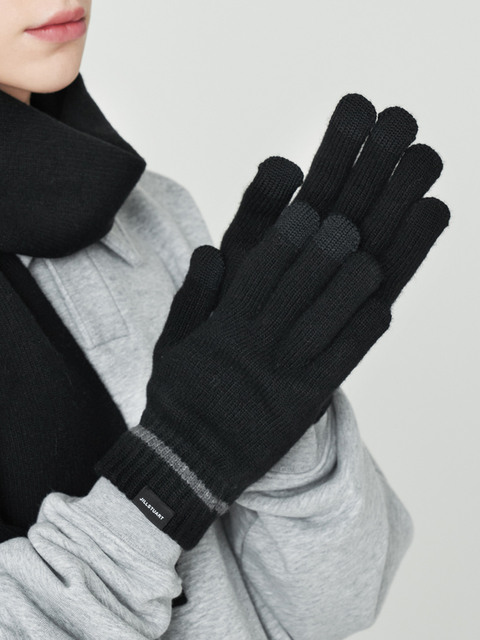 [질스튜어트 맨 액세서리] 블랙 그레이라인배색 울캐시혼방 스마트터치 남자장갑