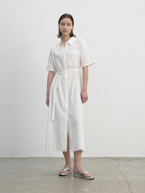 시슬리/애플아울렛/몰턴 벨티드 셔츠 레이어드 롱 원피스 SAOP09441