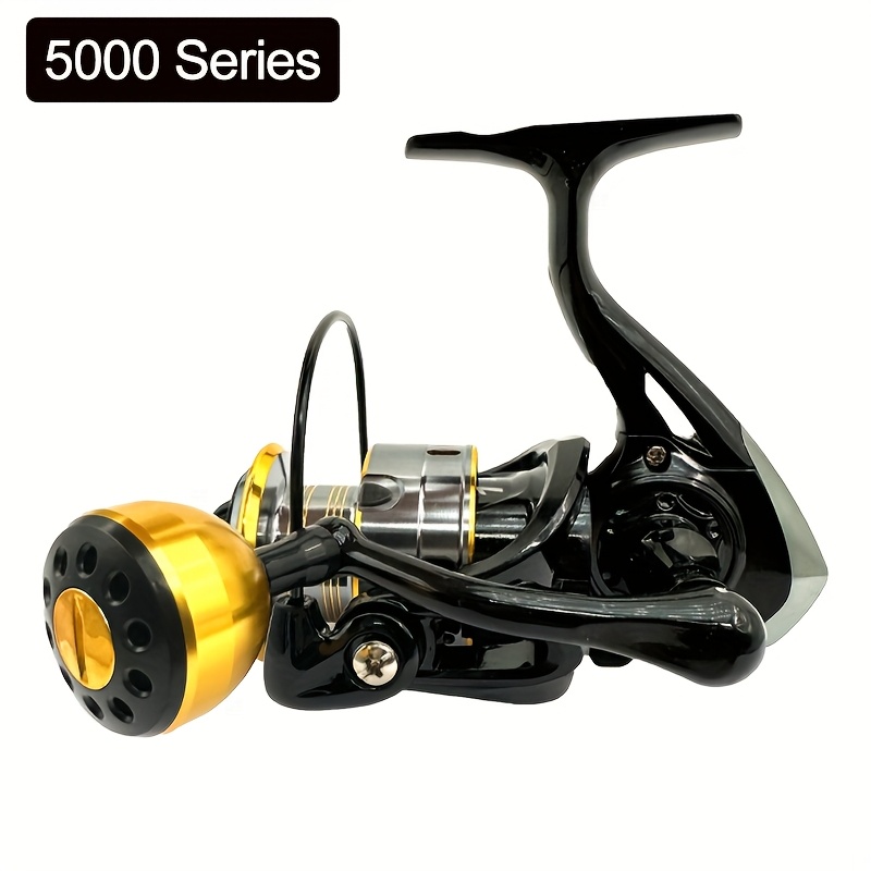 TEMU [실버 골드 라이트 럭셔리 컬러 스킴] 낚시 릴 2000-7000 타입 옵션 풀 메탈 구성 미국 스타일 메탈 로커 암 구형 메탈 그립 메탈 스풀 강력한 나일론 풋 시트 5.2:1 기어비 양손잡이 교체 가능 앤티 세이프