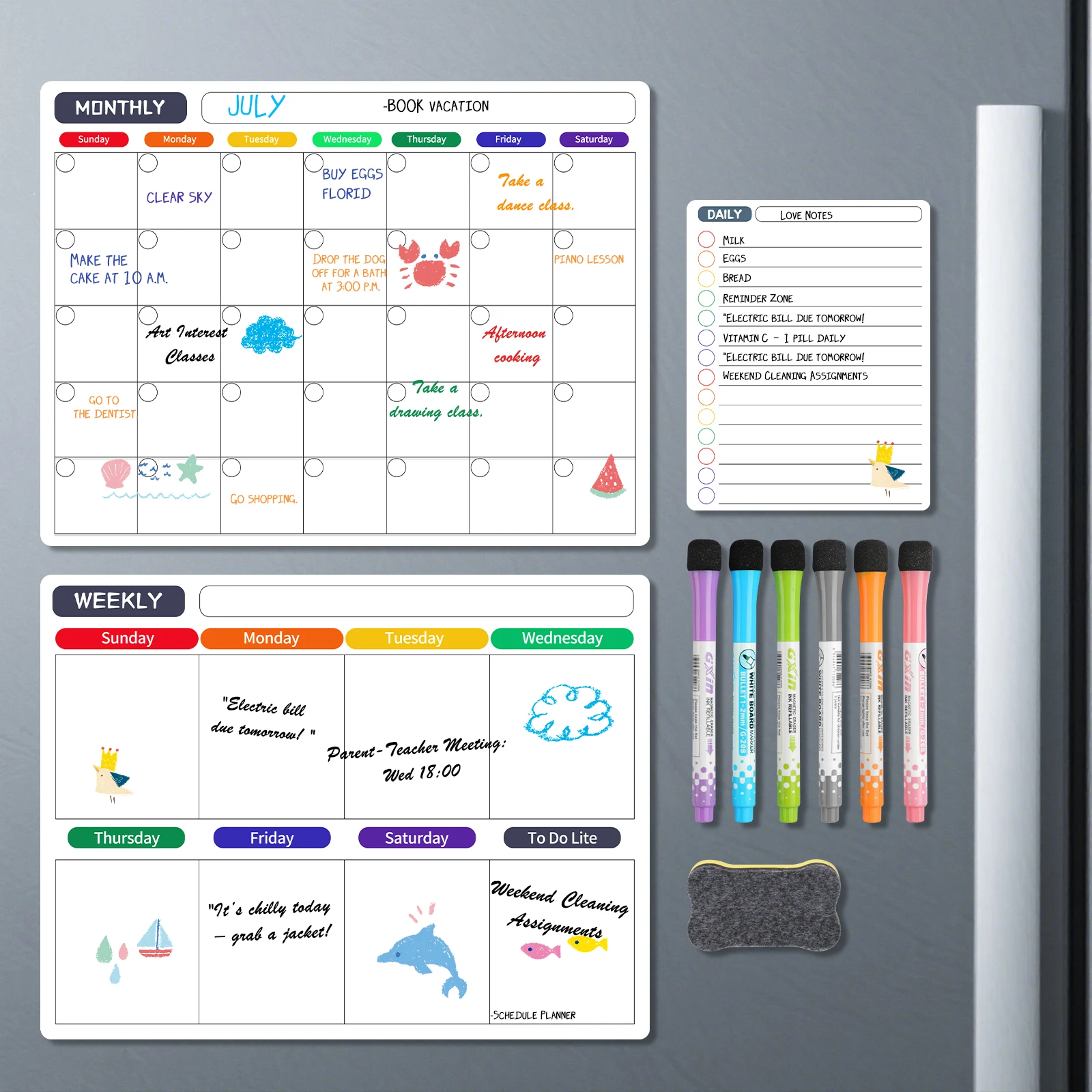 3팩 월간 및 주간 및 일일 플래너 화이트보드 냉장고 벽문용 자석 달력 쇼핑/메뉴 가족 일정