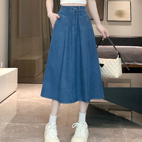 나바바 / NS342 캐주얼 A라인 뒷밴딩 데님 청 치마