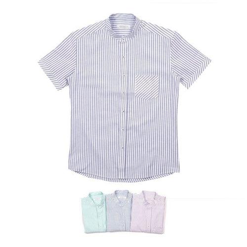 [에이치플러스몰]파스텔 차이나카라 스트라이프 남자반팔셔츠