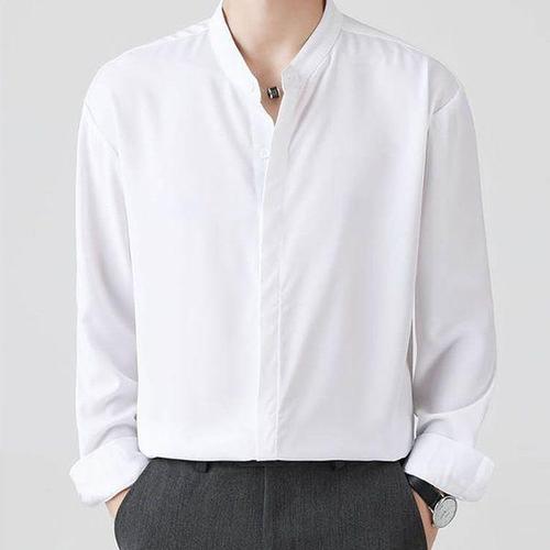 [맨즈북]국산 차이나카라 남성긴팔와이셔츠 흰색 스판정장남방