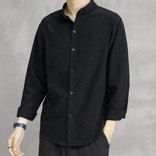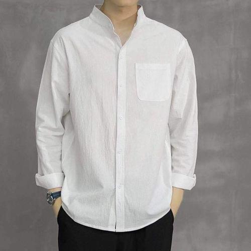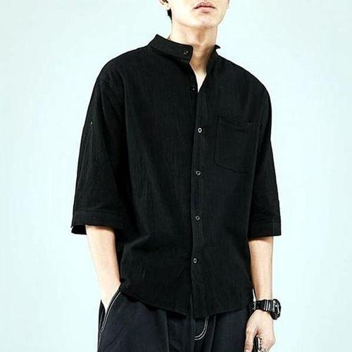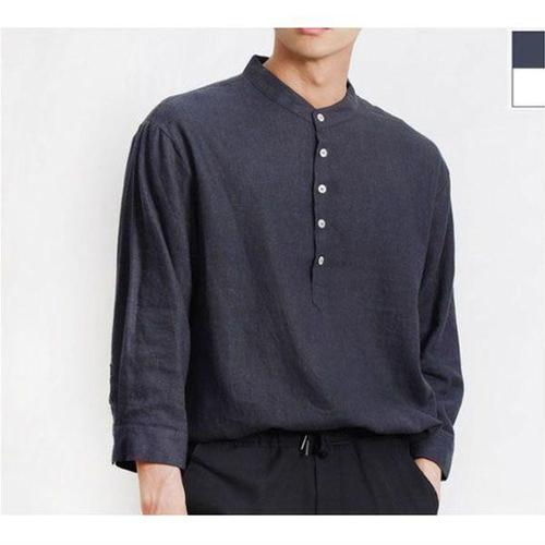 [에이치플러스몰]간절기 남성 베이직 차이나카라 세련 7부 린넨 셔츠