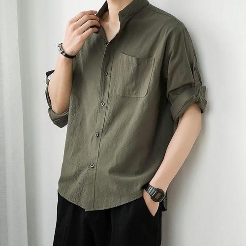 남자 롤업 스타일 7부 셔츠 차이나넥 포켓 린넨셔츠