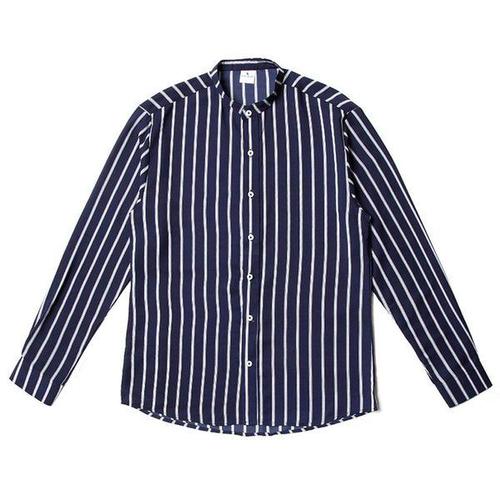 남성요 스트라이프 블루 차이나 셔츠 카라없는 데일리 긴팔셔츠