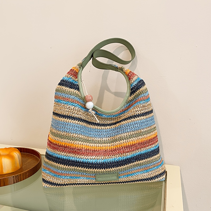 TEMU 여성용 컬러풀 짚 가방 1개 - 손잡이가 있는 대형 여름 해변 토트백, 휴가, 여행, 일상용으로 완벽
