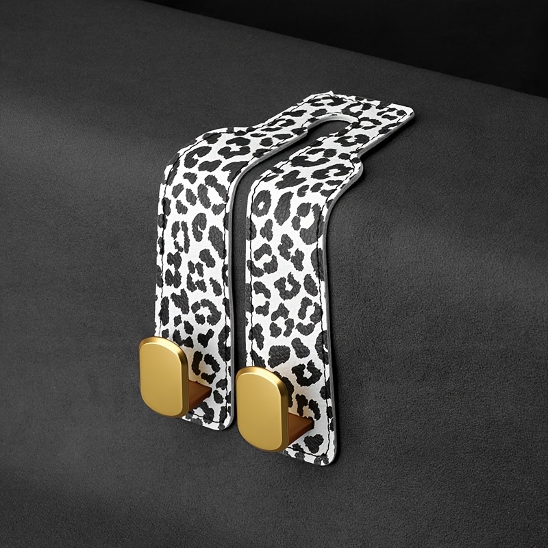 TEMU 프린트 자동차 시트 후크. 스타일리시한 PU 가죽 + 튼튼한 골든 메탈 후크 디자인. 10kg까지 견딤. 핸드백, 쇼핑백, 일상용품 걸이용. 여성 차량 소유자를 위한 트렌디한 인테리어 액세서리. 대부분의 차종과 호환.