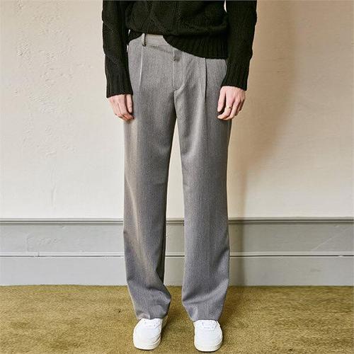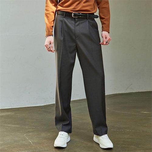 [리빌모아]남자 핀턱 뒷밴딩 와이드 슬랙스 팬츠 AC-PTA-Q043-차콜그레이