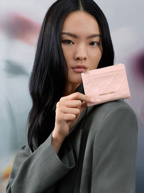 [찰스앤키스] 알바 메탈릭 퀼티드 탑-지퍼 카드 홀더
