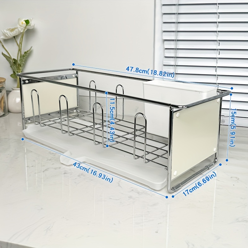 TEMU 2-in-1 확장 가능한 녹방 방지 금속 접시 건조 랙, 팬 슬롯, 도구 홀더 및 배수판이 있는 공간 절약 주방 카운터 및 싱크 정리|식기건조대|식기건조기|싱크대