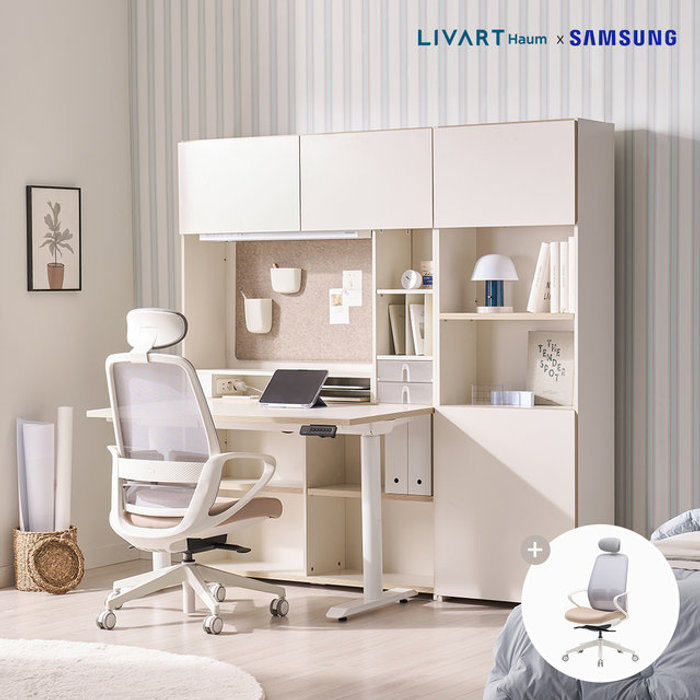 리바트하움 오브제 튜터 1200 5단 모션 책상세트(삼성조명+도어)+어센트 의자 패키지