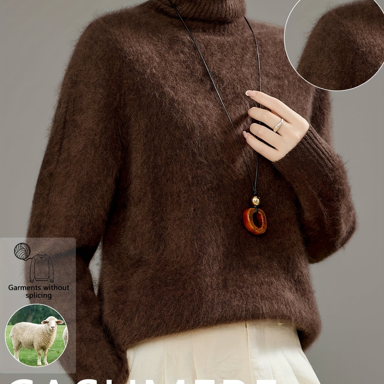 TEMU 가을/겨울 2025 신상 여성용 하이넥 캐시미어 스웨터, 캐시미어 + 캐시미어, 캐시미어 혼방, 브러시드 캐시미어 스웨터, 브러시드 캐시미어 스웨터와 맞먹는 플러시한 느낌, 스타일리시, 다재다능, 우아함, 두꺼운 스타일, 따뜻함, 기성복, 매우 부드러움, 섬세함, 편안함, 구름 같은 촉감. 캐주얼, 가을/겨울 필수 아이템