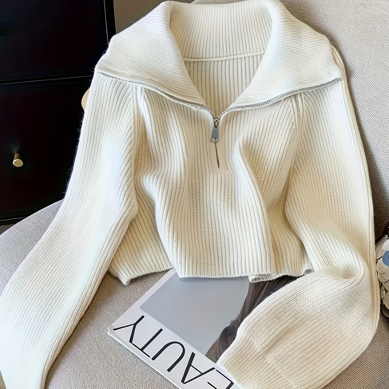 TEMU 새로운 지퍼 하이넥 스웨터, 루즈핏 가을/겨울 아우터웨어, 스타일리시한 디자인 상의, 베이스 레이어, 크롭 스타일