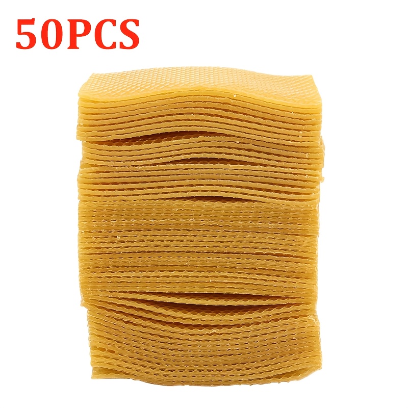 TEMU 50개 천연 밀랍 벌집 기초판 - 사전 절단된 육각형 시트, 넓은 착륙 공간 - 빠른 설치, 벌집 확장 및 꿀 생산을 위한 내구성 강한 벌집 프레임 - 전문가 및 취미용 필수 양봉 장비
