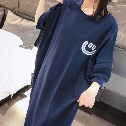 여행 잠옷 준비 홈웨어 반팔 박시 면 원피스 스마일 (WFKOCLQ)