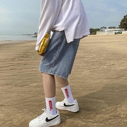 여자 진청 연청 반바지 데님 올매치 데일리 하프팬츠 WFIZKLX