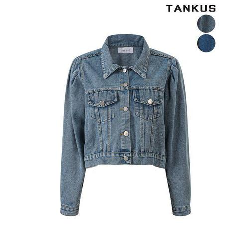 [탱커스]여성 퍼프소매 크롭 데님 자켓