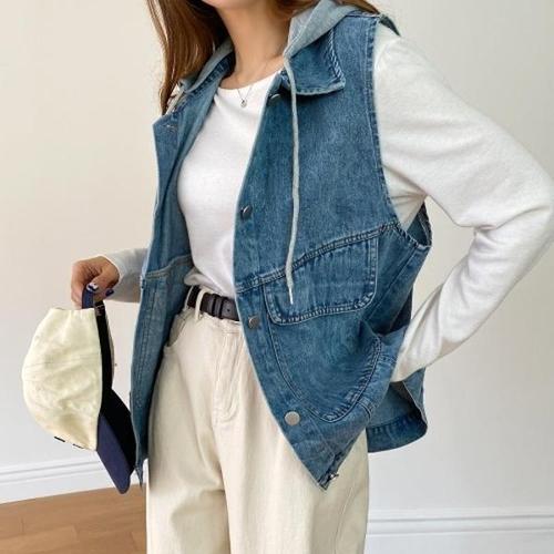 [셀러허브_여성트랜드패션]ONM 청쪼끼 여성 체형커버 데님조끼 워싱 데일리룩 루