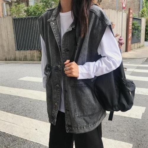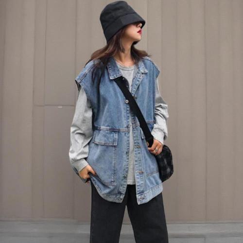 청쪼끼 여성 데님 루즈핏 심플 워싱 데일리룩 캐주얼 청조끼