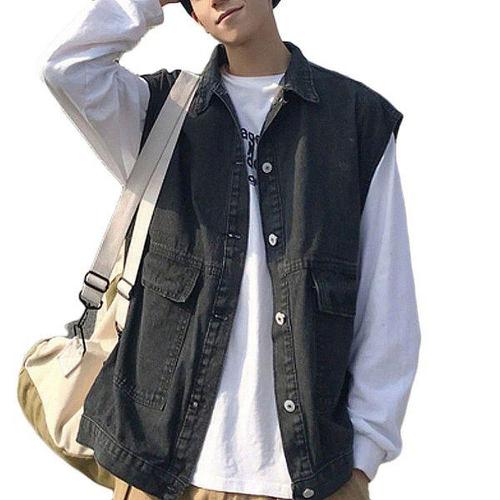 남성 스트릿 루즈핏 버튼 단추 빈티지 청조끼