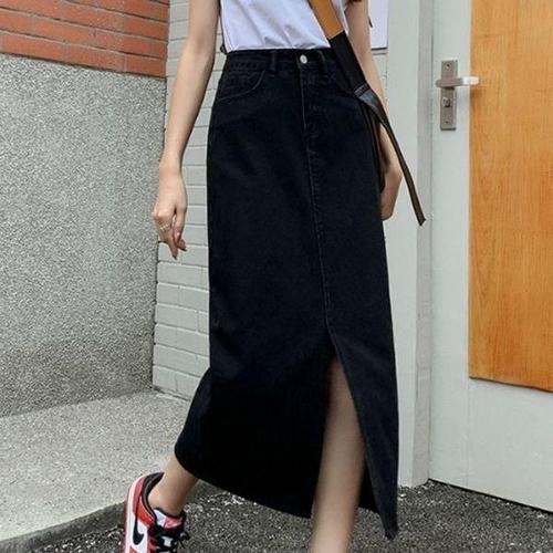 스커트 치마 롱 데님 청치마 앞트임 데일리 데이트 여자
