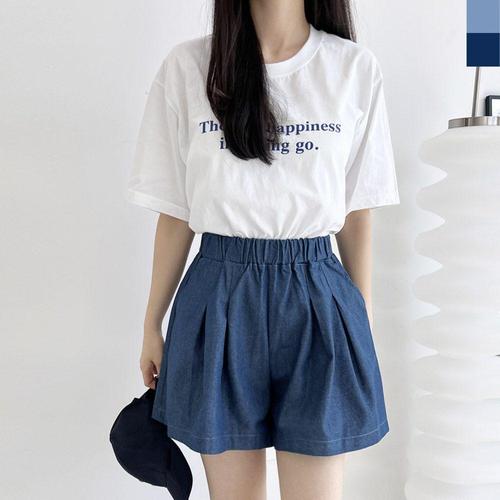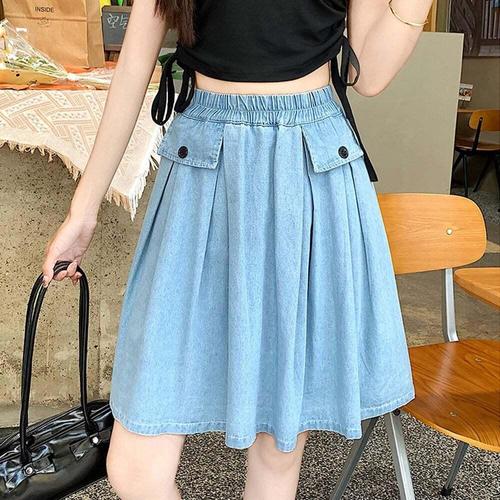 여성용 데님 반바지 여름 A라인 허리밴딩 여유핏 치마바지
