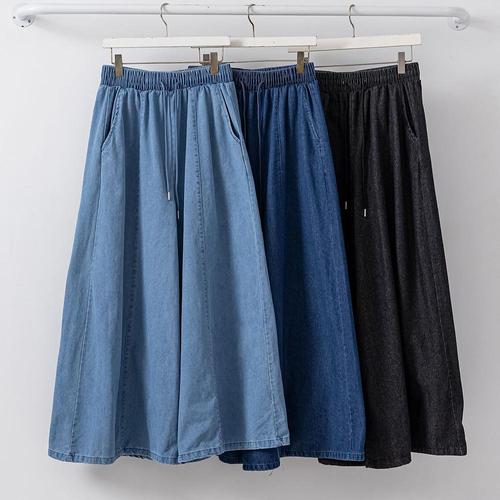 (55~88)데님스커트 청치마바지 롱 밴딩 와이드 여성봄바지 바지세트 데님맥시A라인스커트팬츠