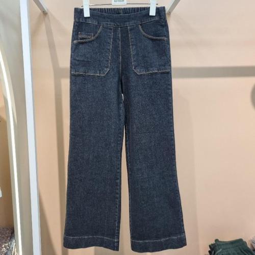 여자청통바지 세미 와이드팬츠 하이웨스트 쓰리버튼
