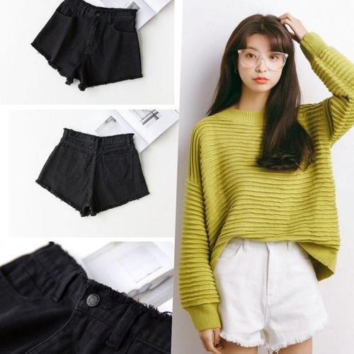 [다잇템]여자 핫팬츠 워싱 넓은 블랙진 밑컷팅 청반바지