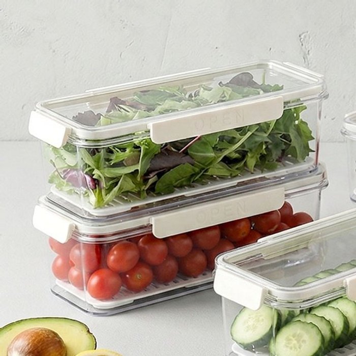 만능 소분 밧드, 냉장고 밀폐 용기, 물빠짐 채반 보관통 (과일,야채,채소,샐러드,대파 보관 보관함 통)