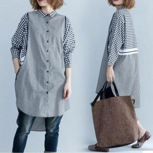 [셀러허브_여성트랜드패션]ONM 체크 봄 가을 9부소매 롱셔츠 원피스 체크 여성