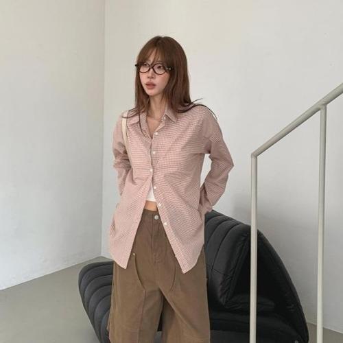 [다잇템][다잇템] 여자 클래식 면100 여유핏 잔잔체크 롱슬리브 남방_22388288_588872