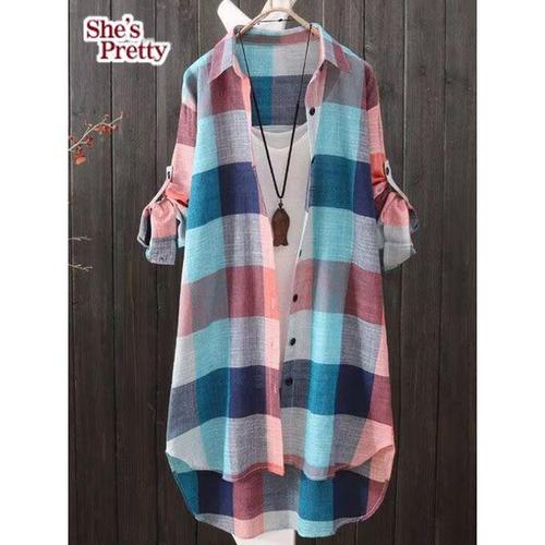 여성 체크 포켓 롱 셔츠_100(10530-120-601-25)