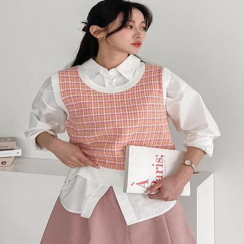 [모델리스트][모델리스트] 실키 체크패턴 니트 베스트 (MESVT011)