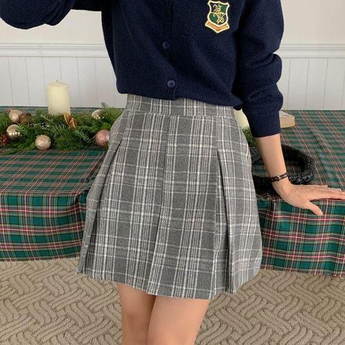 [옷자락] 여성 반 플리츠 포인트 체크 패턴 미니 스커트