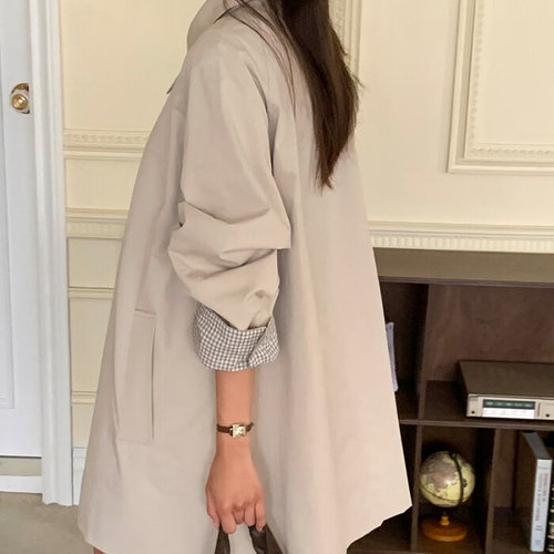 [프렐린]ROT243011 체크 배색 안감 카라넥 트렌치 코트