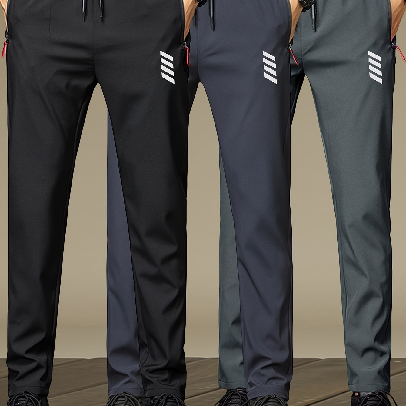 TEMU 3pcs 남성 캐주얼 러닝 팬츠 - 얇고 가벼운, 빠른 건조 폴리에스터, 지퍼 디테일, 스타일리시 프린트, 야외 스포츠 및 일상 착용에 이상적, 휴일 선물로 좋은 선택, 일반 핏